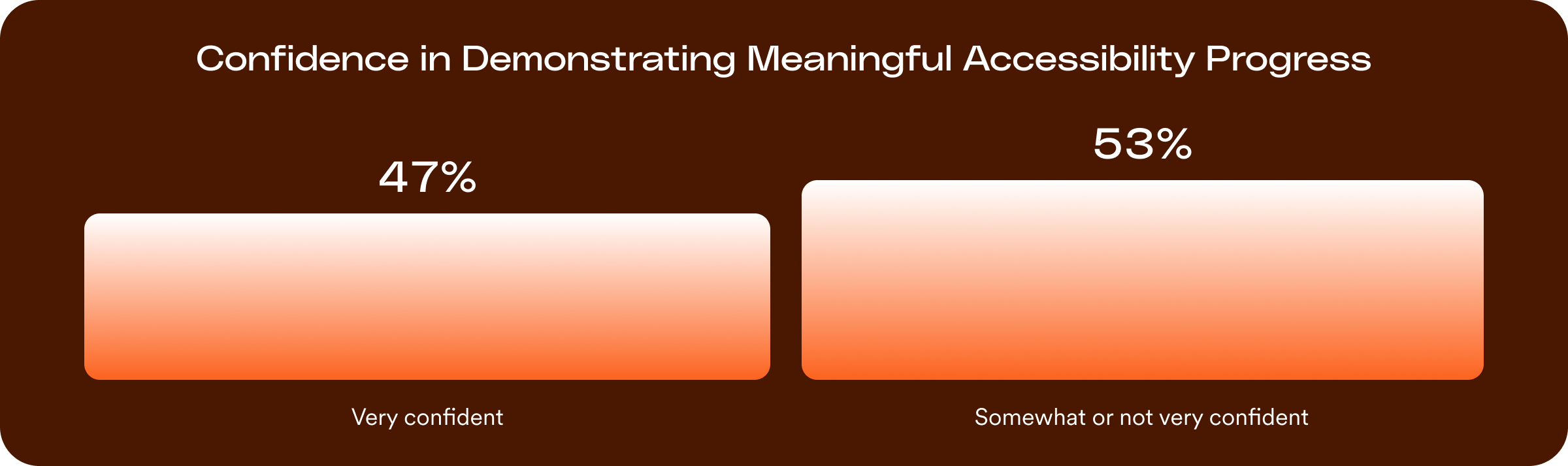 In our survey, 47% of institutions reported being very confident they could show meaningful progress on accessibility if questions arose today, while 53% reported being only somewhat or not confident at all.