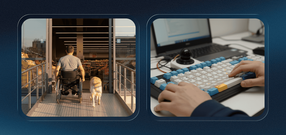 For physical environments, compliance means your facilities and operations provide equal access. That includes accessible routes and entrances, appropriate door widths and clear floor space, compliant restrooms and parking, elevators where required, readable signage, and accessible service counters or seating. It also includes policies that enable access, such as permitting service animals and providing effective communication in person when needed.