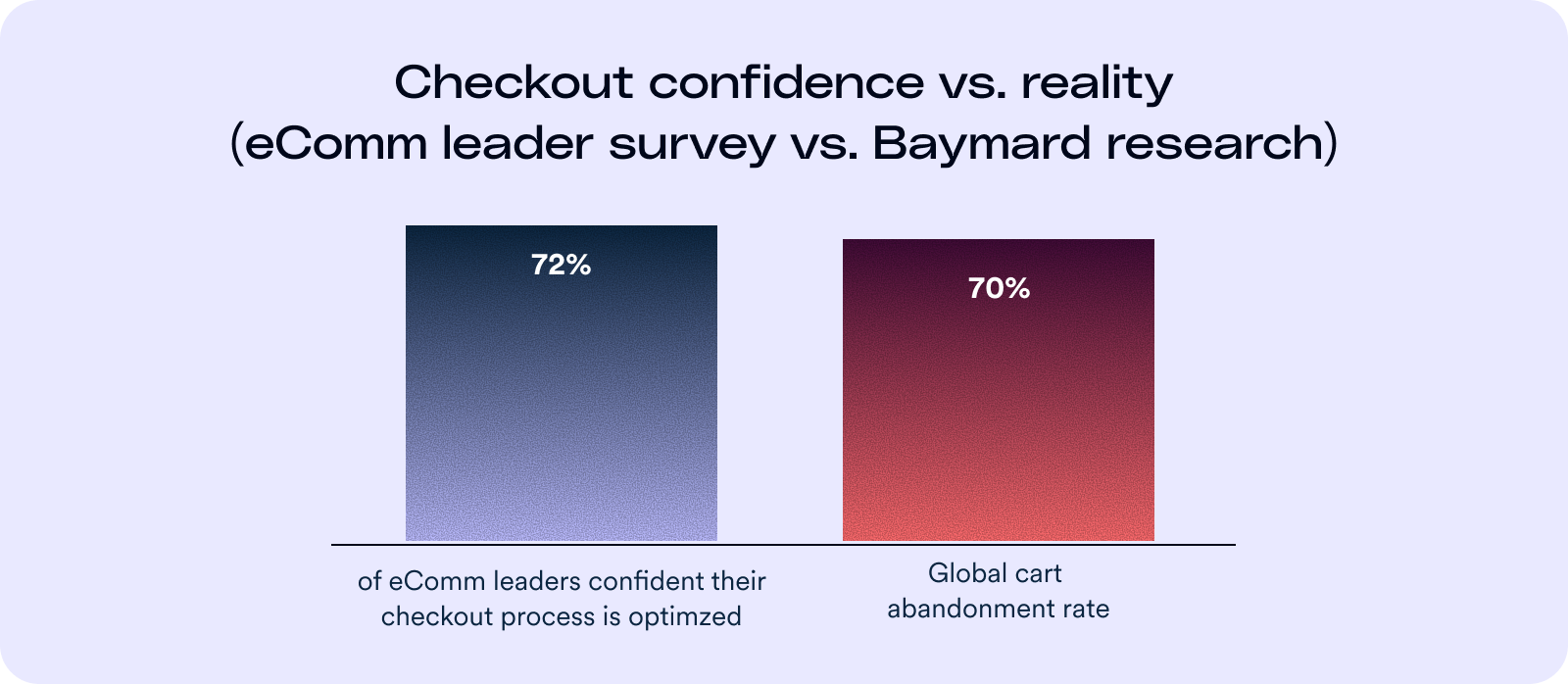 Yet 72% of eCommerce leaders told us they are confident their checkout flows are “fully optimized.” With abandonment rates still above 70%, that confidence doesn’t match reality—and may be masking the flaws that drive customers away.